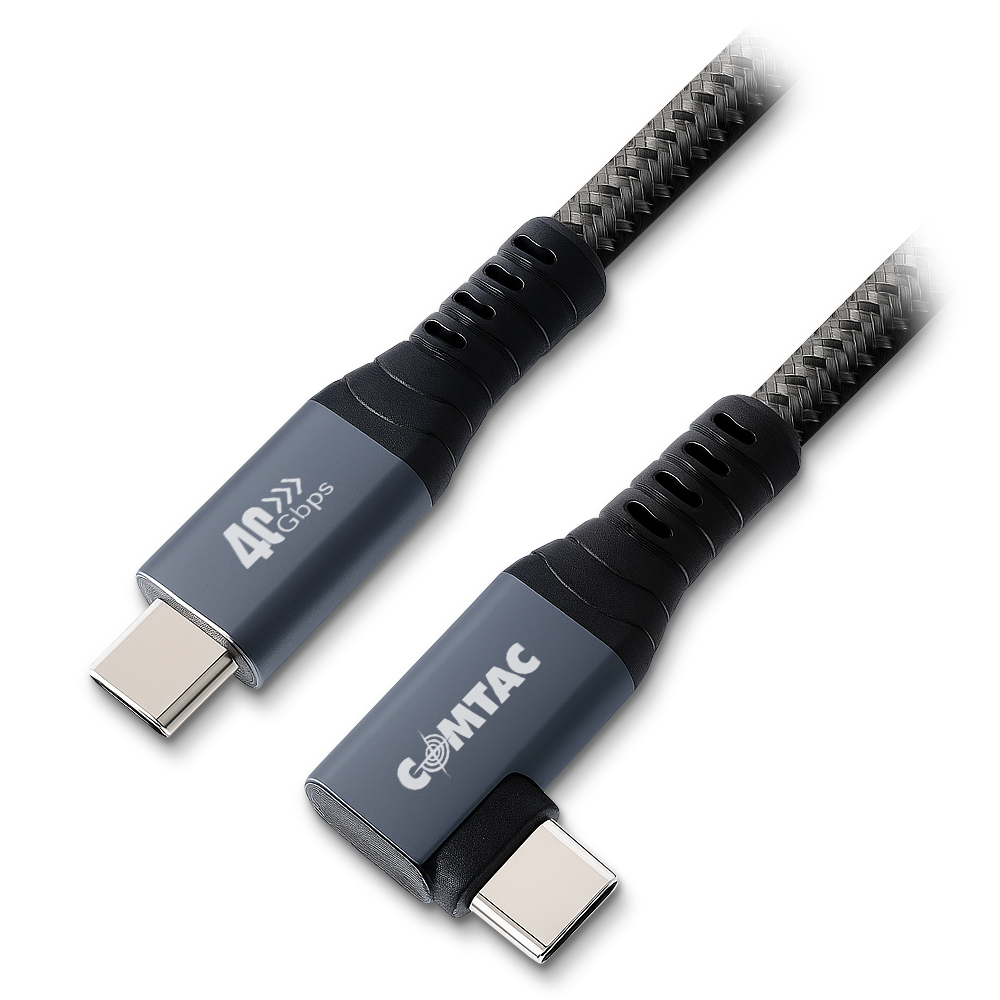Cabo USB4 USB-C para USB-C com conector em L 90° para setups compactos e maior conforto, 2 metros, 40 Gbps, 240 W, PD 3.1 e suporte a resolução de vídeo até 8K.